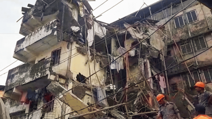The incident occurred around 12:00 a.m., when the rear portion of the building collapsed onto an adjacent chawl, trapping multiple residents beneath the debris.