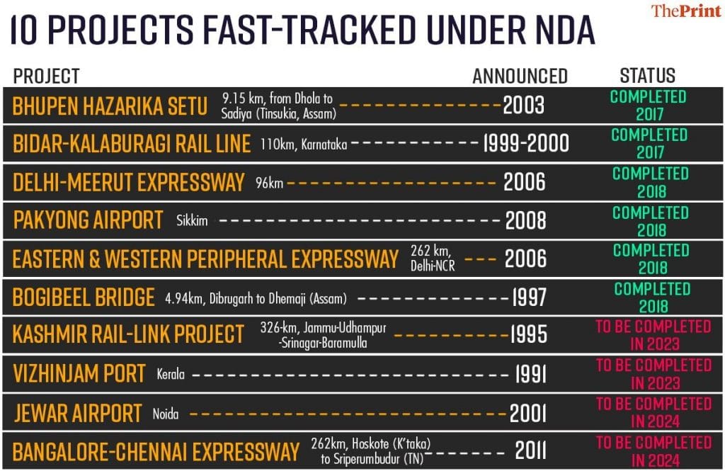 Nevertheless, several major infra projects that were delayed during the UPA era have been completed or fast-tracked since 2014.