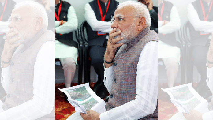 Chandigarh: Prime Minister Narendra Modi conducted an aerial survey of flood-hit areas of Punjab on Tuesday. He also interacted with personnel of the National and state Disaster Response Force as he assessed the flood situation in the state.