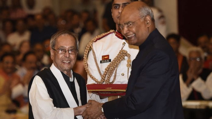 New Delhi: Former president Pranab Mukherjee, late Bharatiya Jana Sangh leader Nanaji Deshmukh and late singer Bhupen Hazarika were conferred the Bharat Ratna, the country’s highest civilian award, on Thursday.