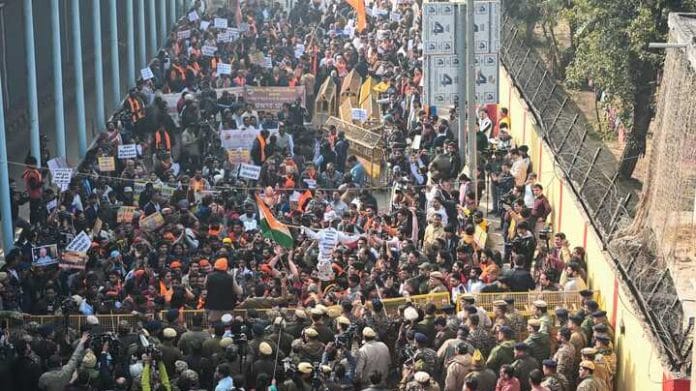 New Delhi: Vishva Hindu Parishad (VHP) protestors on Tuesday clashed with police and broke barricades outside the Bangladesh High Commission in Delhi, protesting the mob lynching of Dipu Chandra Das, a Hindu youth in Bangladesh.