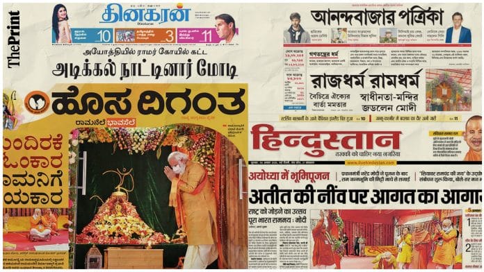 Dinamani — a Tamil daily — noted in its headline, “Golden era of Indian History – Prime minister says while laying foundation stone for Ayodhya”.