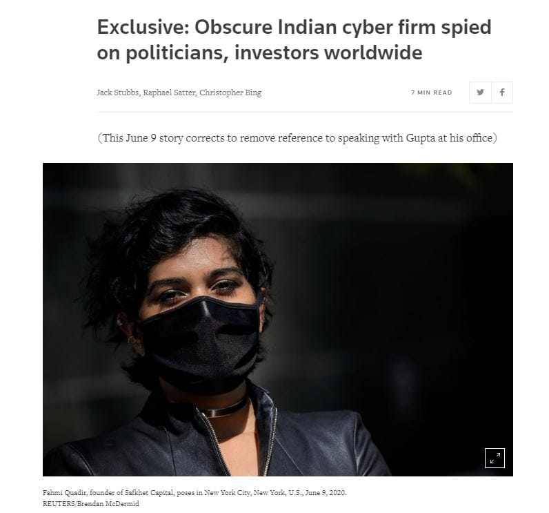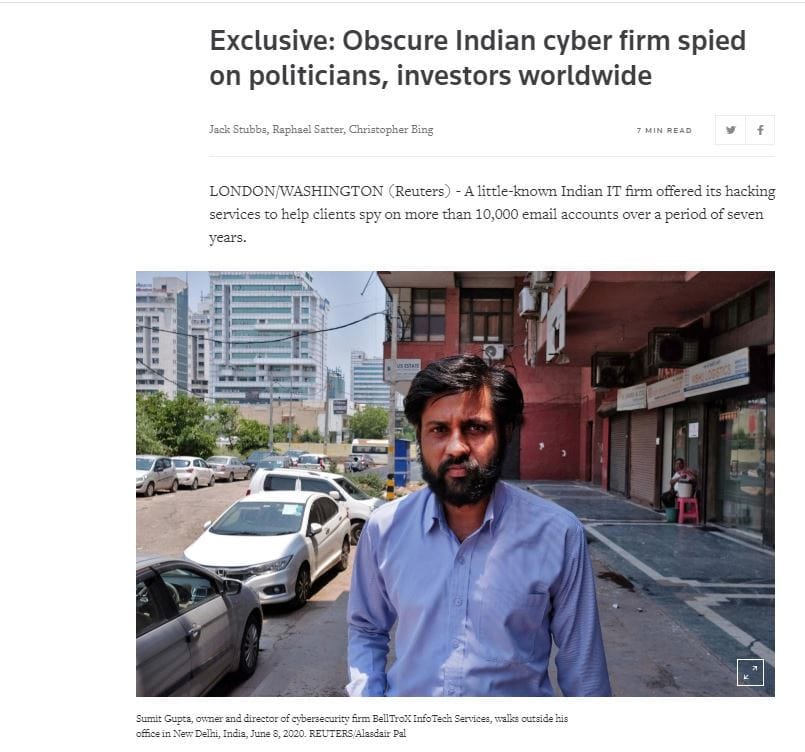 The Reuters exclusive on 9 June reported on an “obscure” firm in Delhi which hacked and spied on over 10,000 email accounts, including those of politicians, journalists, and investors worldwide.