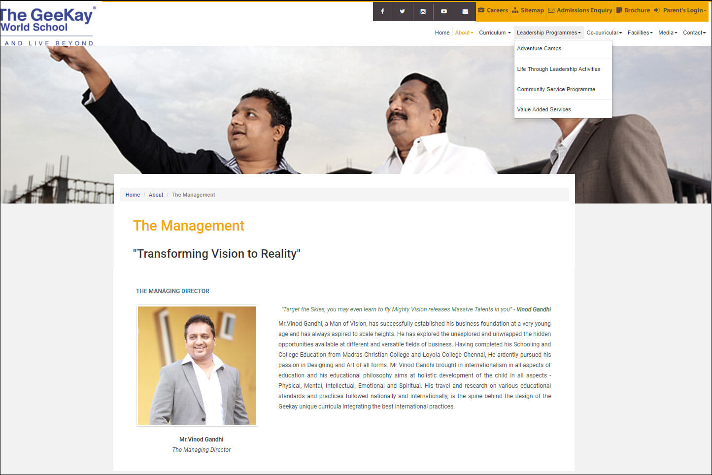 Another DMK MP, R. Gandhi, and his son, Vinod Gandhi, own The Geekay World School, which is affiliated to both the CBSE and the Cambridge curriculum.