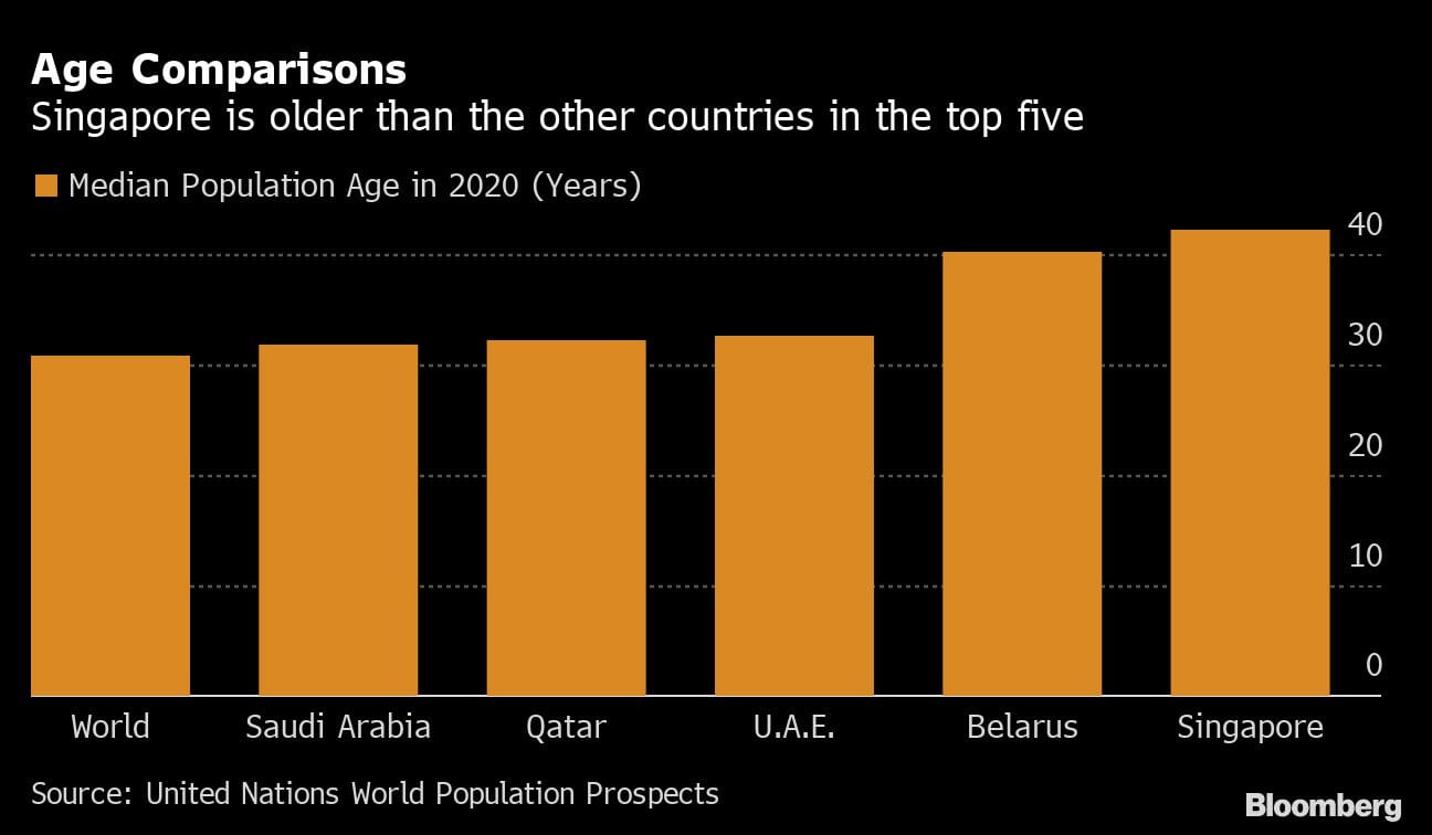 While Singapore has an aging population and a higher median age than Qatar, the majority of its infections are among low-wage foreign workers, who are typically young and undergo health checks before they are allowed into the country to work.