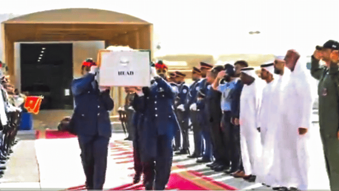 The mortal remains of the Indian Air Force (IAF) officer were flown back to India on a special aircraft. The Emirati Defence Forces accorded him a ceremonial guard of honour in recognition of his bravery and service.