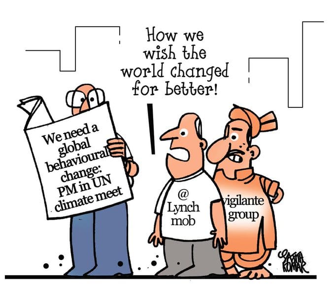 At the UN Climate Action Summit this week, PM Modi called for a “global behavioural change” to rein in global warming. Sajith Kumar suggests there are other behaviours that also need to be checked urgently.