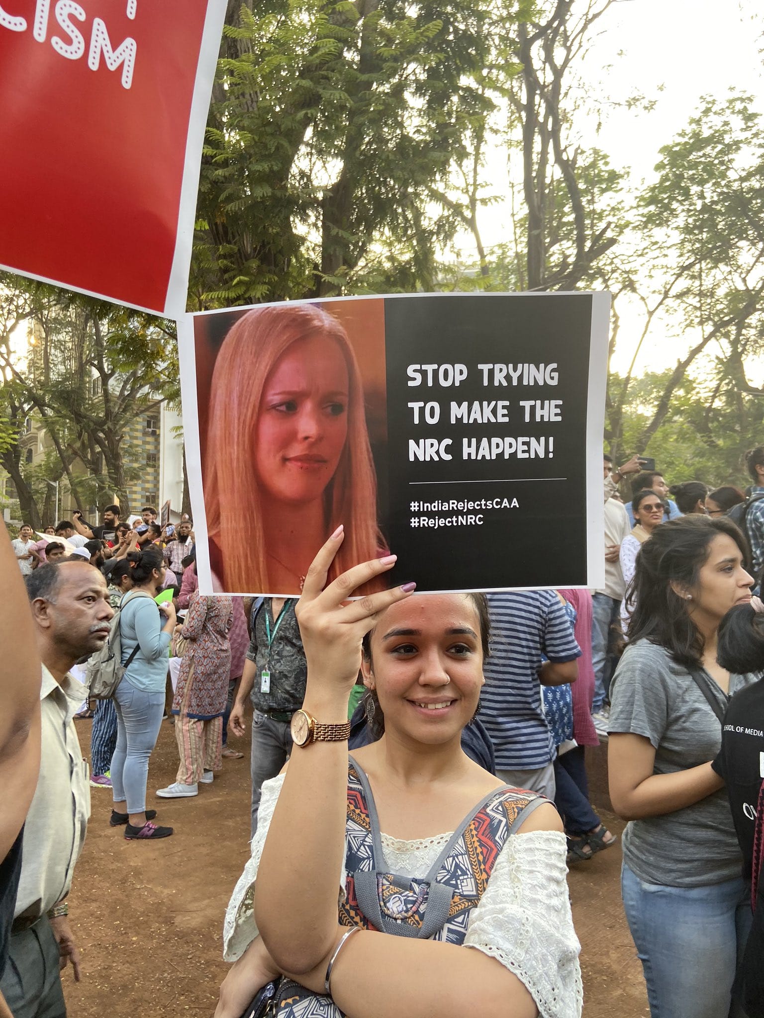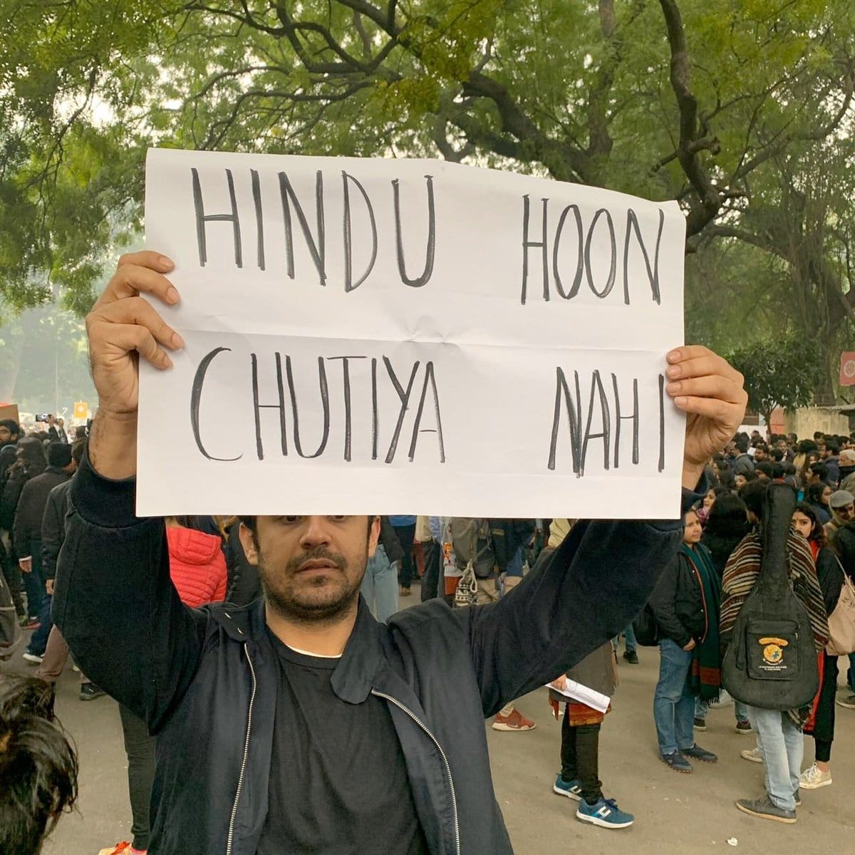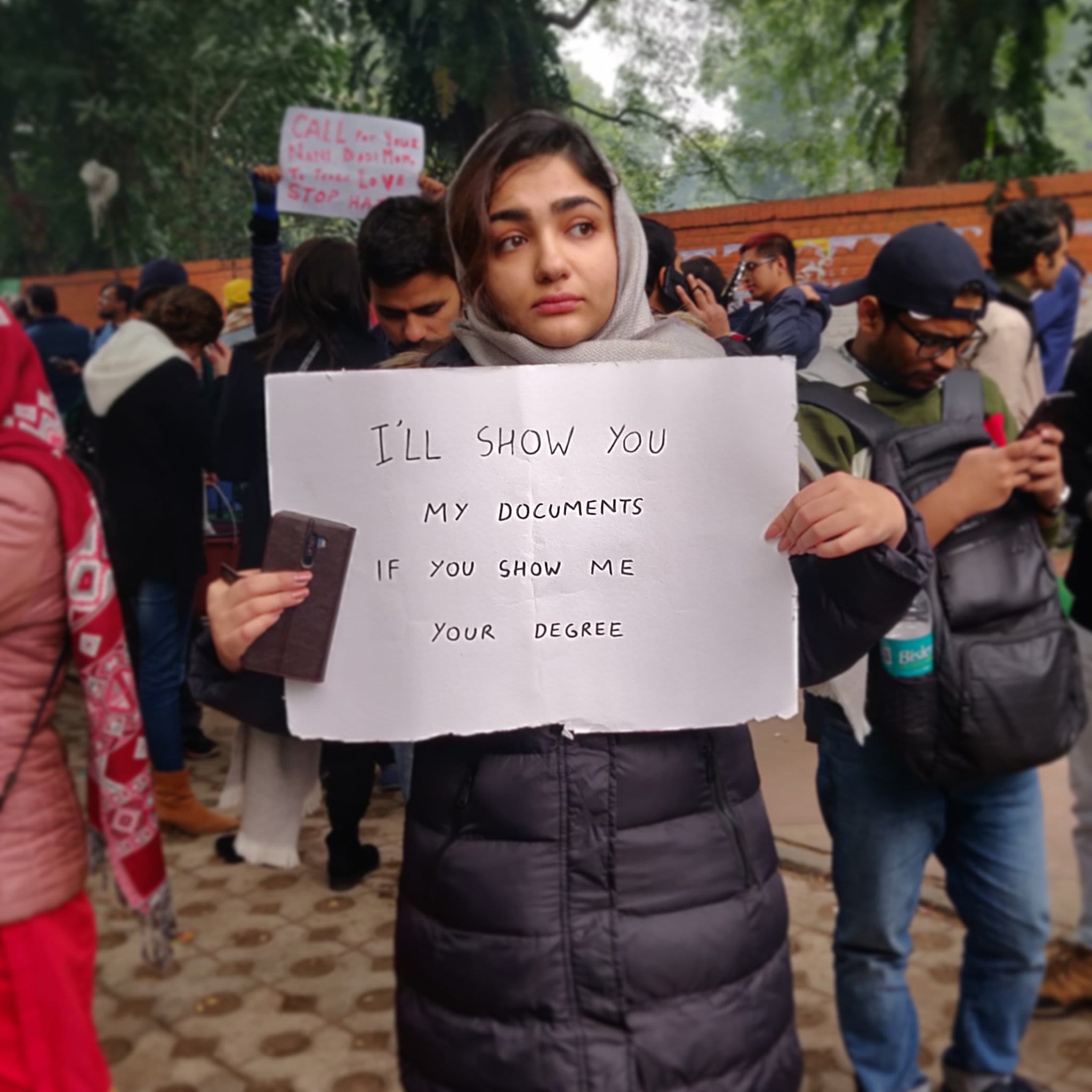 Bundled in puffy jackets and mufflers and warmed by the hot tea being offered by vendors, they carried posters with the text of the Preamble of the Constitution, photos of Gandhi and B.R. Ambedkar, as well as posters with some rather earthy messages.