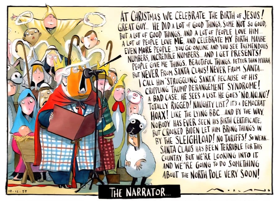 The selected cartoons appeared first in other publications, either in print, online, or on social media, and are credited appropriately.