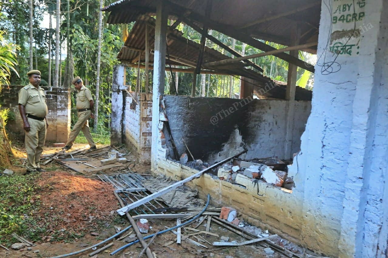 Bricks and rubble lay strewn in a heap outside the Chamtilla Jame Mosque. Through its broken windows, ThePrint could spot fans whose blades had been twisted out of shape. Nearby lay 25 felled Agar trees in a line.
