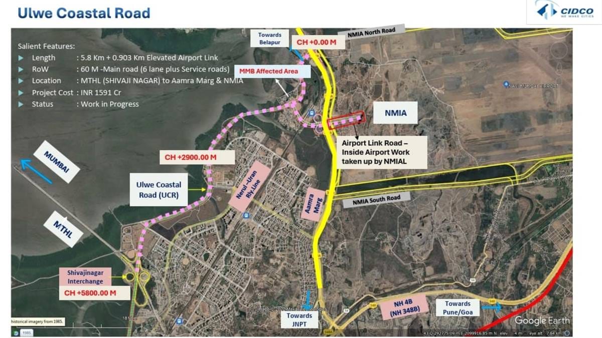 Navi Mumbai: With the Navi Mumbai International Airport (NMIA) expected to begin operations this December, the City and Industrial Development Corporation (CIDCO) is focusing on completing the Ulwe Coastal Road, a key project that will provide last-mile connectivity to the new airport from Mumbai Trans Harbour Link (MTHL), known as the Atal Setu.