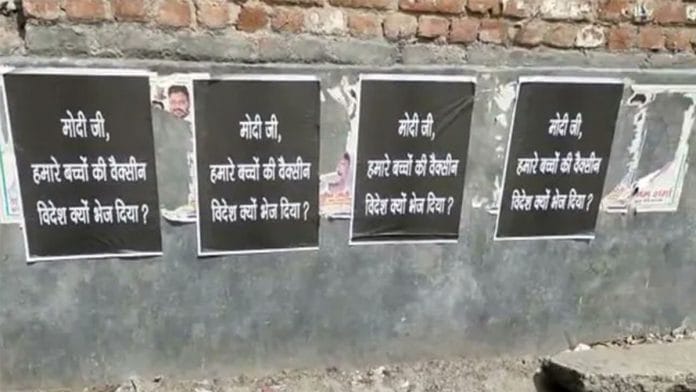 In the past few days, several posters criticising PM Modi’s vaccination strategy had surfaced across the national capital. The posters read: “Modiji humare bachon ki vaccine videsh kyu bhej diya (Modiji, why did you send vaccines of our children to foreign countries?)”.