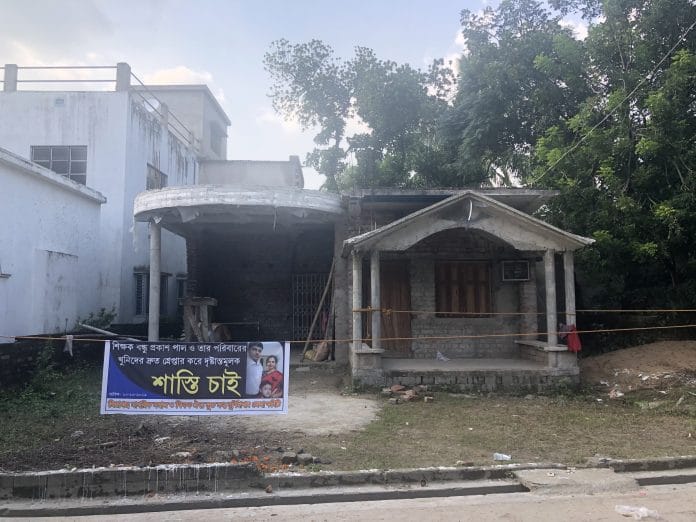 A lower-middle class locality, the place never had a history of communal tension or violence. There were four Durga Puja pandals in a 500-metre radius of Prakash’s residence this year. On 8 October, a day after Vijaya Dashami, Prakash, his eight-months pregnant wife Beauty and their seven-year-old son Bandhu Angan Pal, were found murdered inside the house.