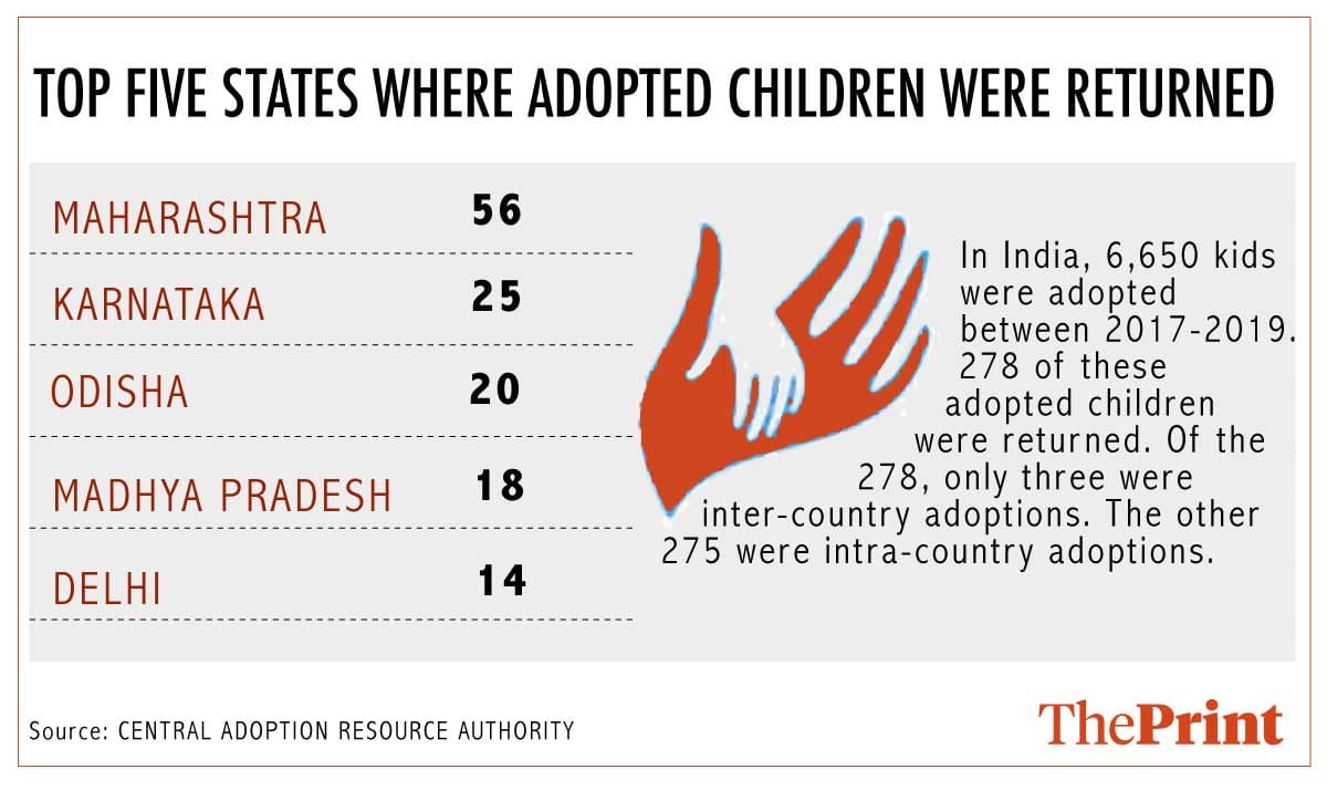 “Of the 3,200 children adopted by Indian families in one year, hardly 50 are those with special needs. For inter-country adoptions — 400 of the 700 adopted are specially-abled. It’s the older children who comprise a majority of children returned,” Kumar told ThePrint.