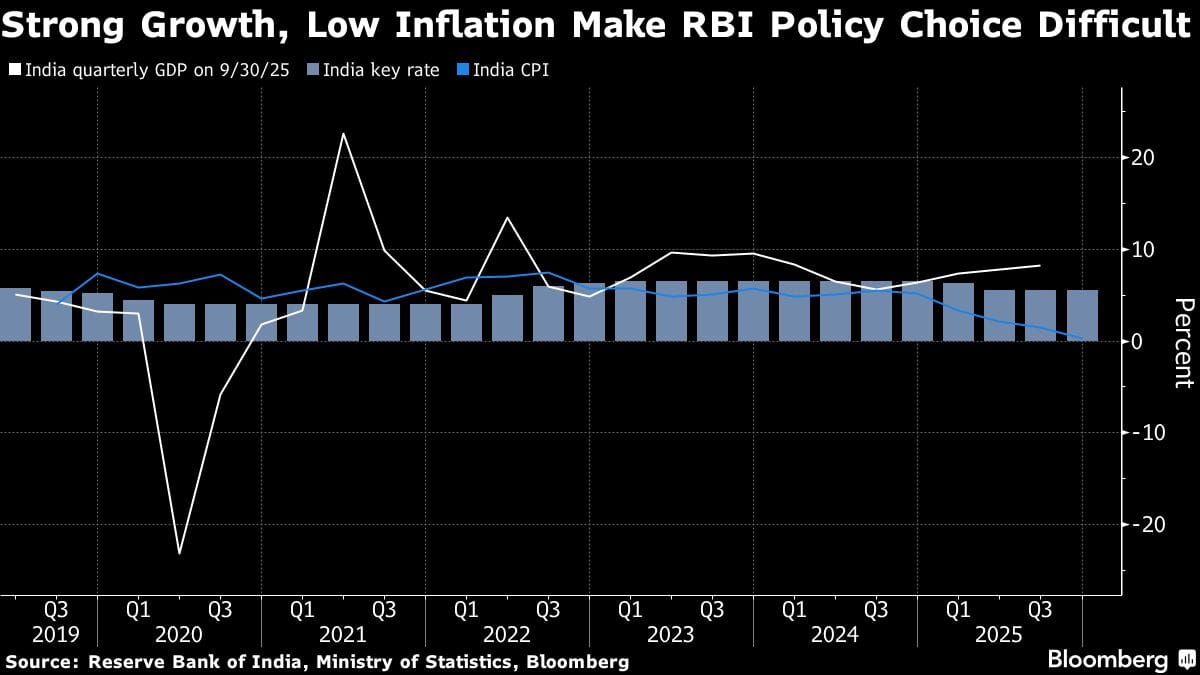 After keeping rates unchanged in the past two policy meetings, Governor Sanjay Malhotra opened the door to rate cuts last month, saying there was “definitely scope” for rates to come down. Since then, however, official data showed the economy is proving resilient in the face of high US tariffs, expanding at a faster-than-expected pace last quarter, while the rupee has plummeted.
