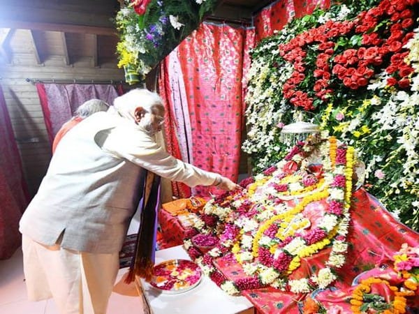 Ayodhya (Uttar Pradesh) [India], October 24 (ANI): Prime Minister Narendra Modi on Sunday visited Ayodhya in Uttar Pradesh and performed darshan and pooja of Lord Rama here on the eve of Diwali.