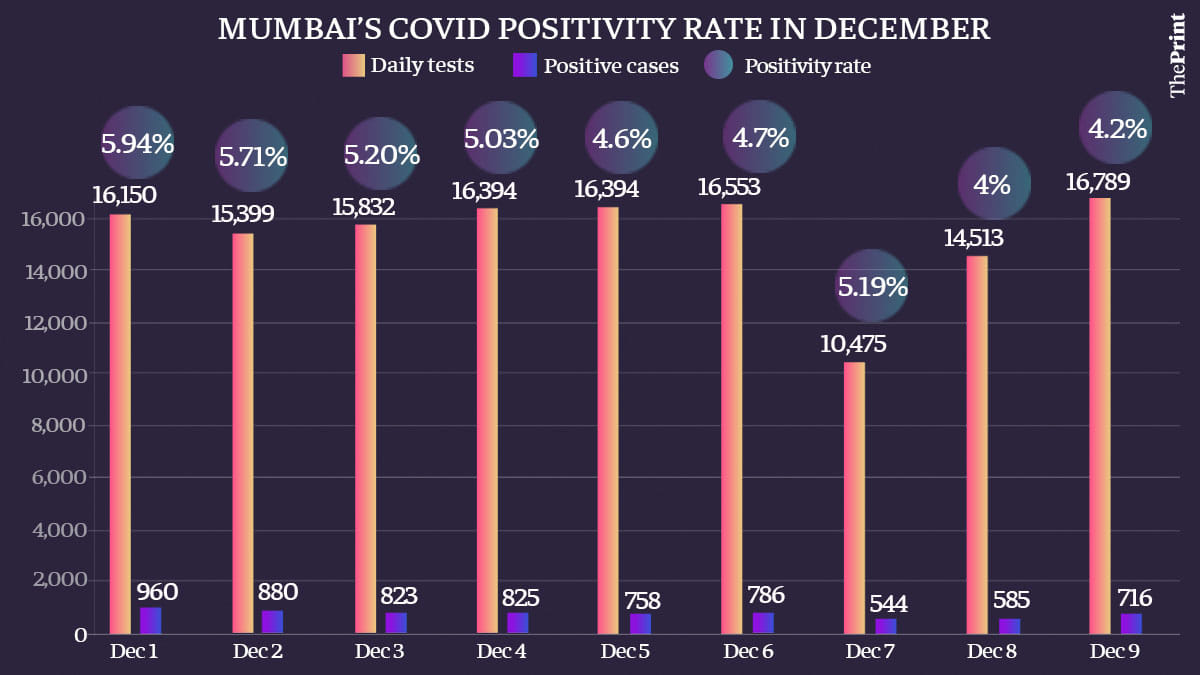 According to data from the BMC, Mumbai reported a positivity rate of 4.2 per cent on Wednesday with 716 new cases out of 16,789 tests that day. On Tuesday, the positivity was at 4 per cent with 585 new cases out of 14,513 tests.