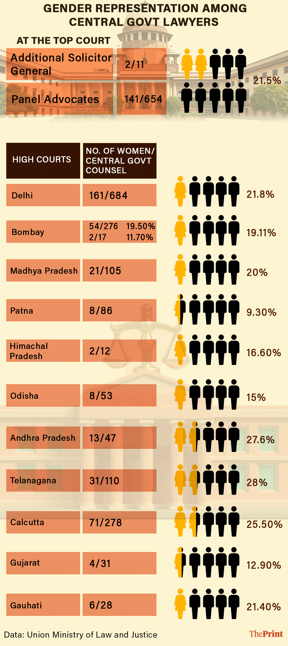 New Delhi: When the Union government goes to courts, it does so overwhelmingly through male voices.