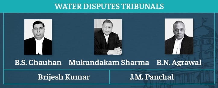 Five judges — Justices Brijesh Kumar, B.S. Chauhan, J.M. Panchal, Mukundakam Sharma and B.N. Agrawal — headed water disputes tribunals to settle rows between different states on issues such as the use, distribution or control of waters of any inter-state river or river valley.