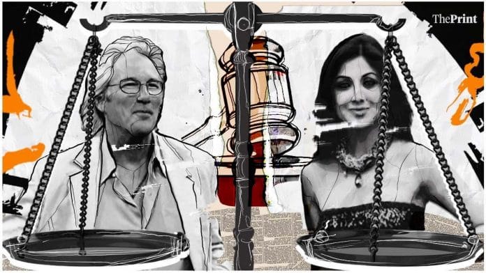 The Alwar complaint, seen by ThePrint, was filed by two Mundawar lawyers, Bhoop Singh and Jagannath, naming Shetty, Gere and a TV channel (for telecasting the video of the kiss repeatedly). It said that the incident was against “Indian culture” and objected to the fact that Shetty didn’t “protest” against Gere’s “advances”.