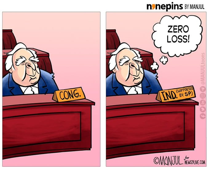 Manjul takes a dig at Kapil Sibal’s exit from the Congress, days before the end of his tenure as a Rajya Sabha member. The former Union minister made the announcement Wednesday, shortly after filing his nomination papers for Rajya Sabha as an independent candidate backed by the Samajwadi Party.