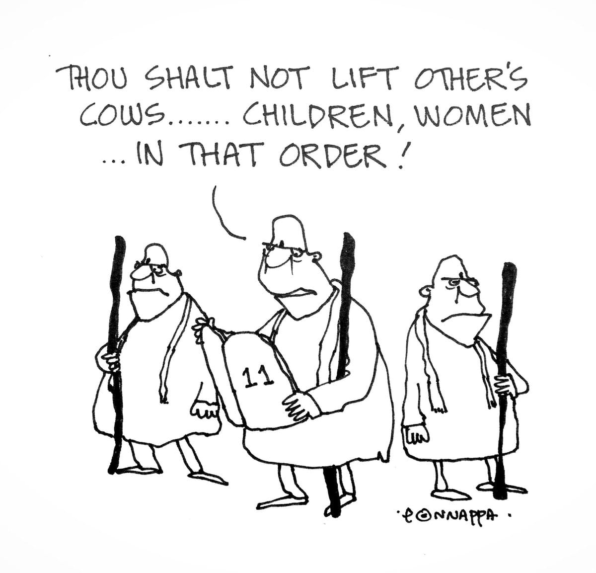 Nala Ponnappa mocks the Indian system which gives more priority to cows than children and women. When it comes to lifting cows, children, and women, it is very important to maintain the “order”.