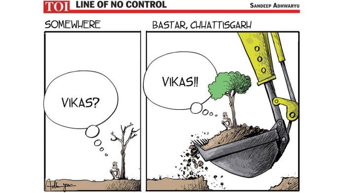 In The Times of India, Sandeep Adhwaryu makes a sarcastic remark on the idea of vikas or development, being propagated by the BJP. In Chhattisgarh, for instance, tribals are being displaced in the name of development.
