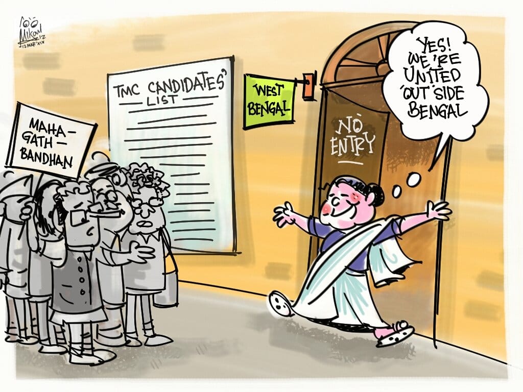 With West Bengal chief minister Mamata Banerjee announcing the TMC candidate list for all 42 seats in the state, Mika Aziz takes a jibe at Banerjee for seeking the ‘Mahagathbandhan’ only outside her state.