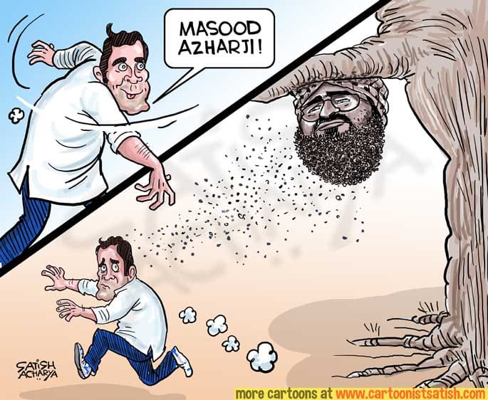 Satish Acharya illustrates Congress President Rahul Gandhi’s comments on Masood Azhar backfiring after he addressed the JeM chief as ‘Masood Azharji‘.