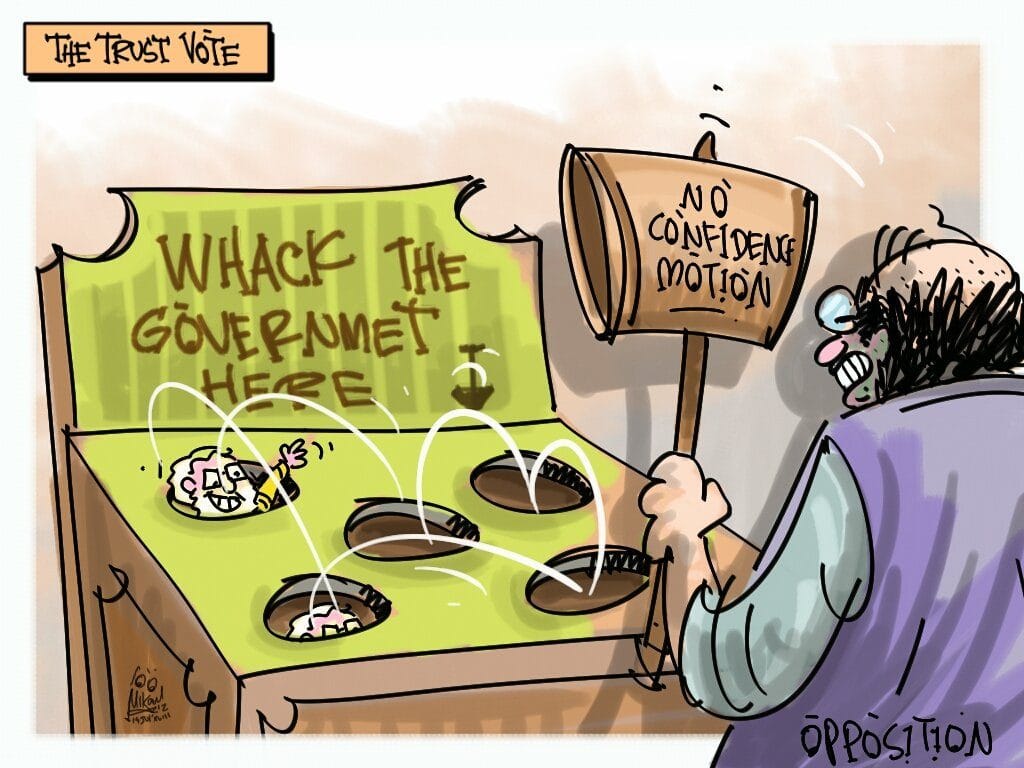 Mika Aziz mocks the no-confidence motion pushed against the Modi government for the second time this year and the NDA’s ability to evade it by gaining the trust vote.