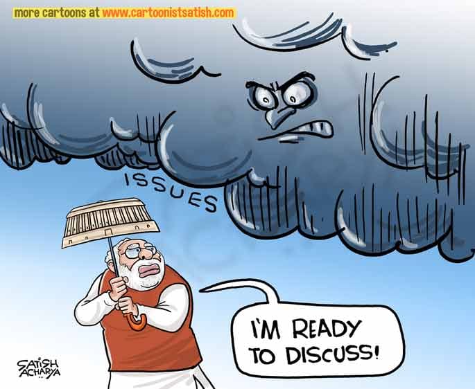 Satish Acharya draws a Narendra Modi hesitant but ready to discuss looming issues like lynchings, price rise, and agrarian issues in the monsoon session of Parliament.
