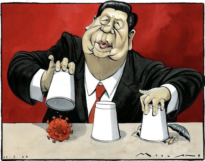 After China’s proposed move to impose security laws that threaten Hong Kong’s autonomy, Morten Morland depicts the game played by President Xi Jinping, one that openly discusses coronavirus but stifles basic rights in Hong Kong.