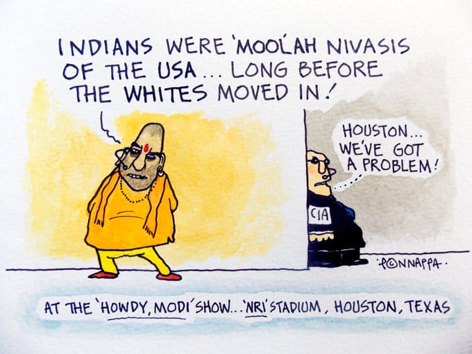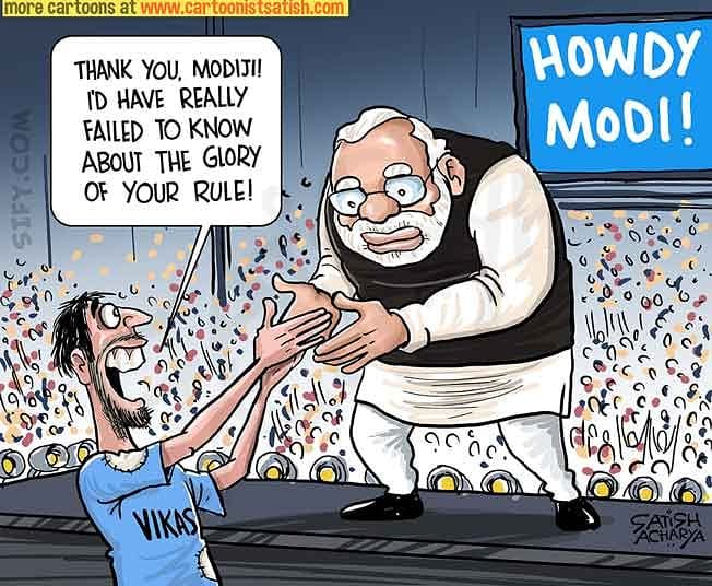 Satish Acharya takes a jibe at the Prime Minister’s “Howdy Modi” rally in Houston with a reference to the state of the economy in the country.