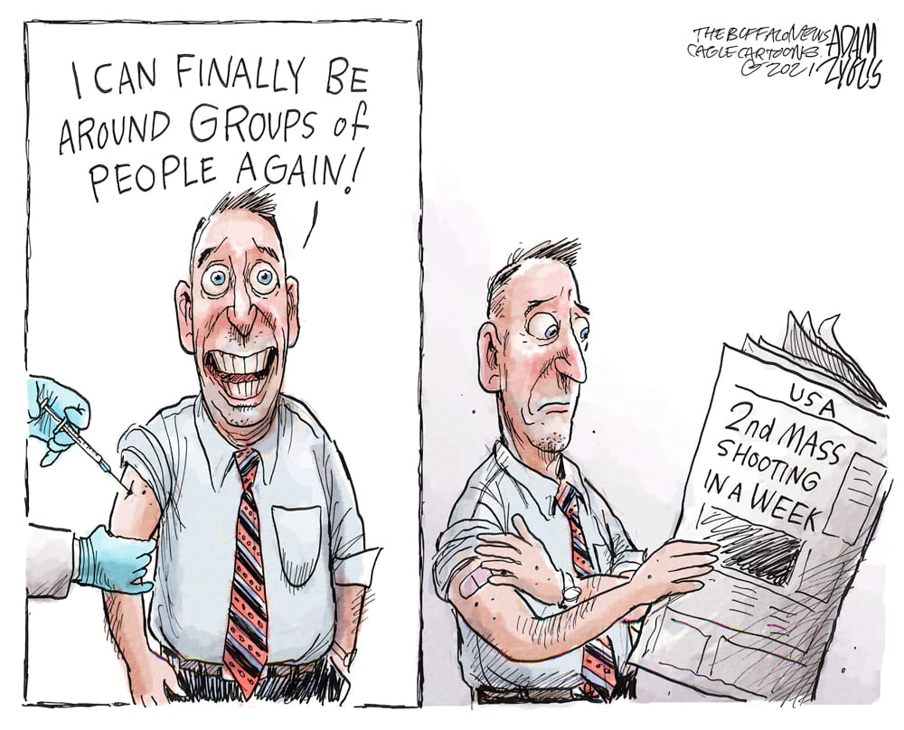 Pulitzer-winning cartoonist Adam Zyglis makes a pointed comment about the recent mass shootings in the US states of Colorado and Georgia.