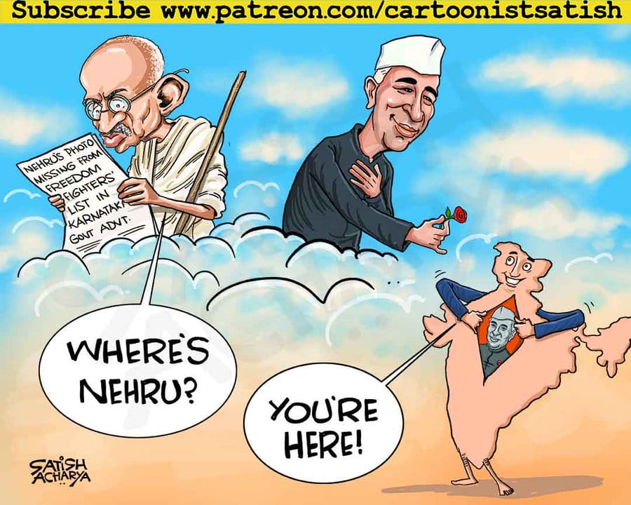 Satish Acharya too, refers to criticism of the Karnataka government for leaving out Jawaharlal Nehru from a full page advertisement honouring freedom fighters.