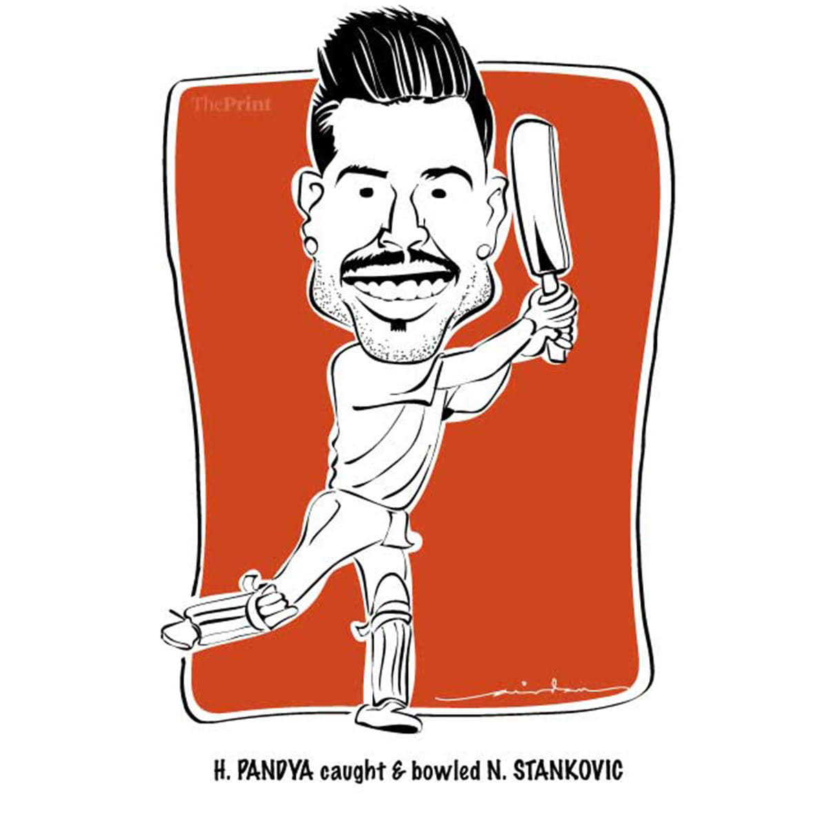 Indian cricketer Hardik Pandya got engaged to Serbian actress Natasa Stankovic and Arindam Mukherjee depicts the engagement using the cricketing term ‘caught and bowled’.