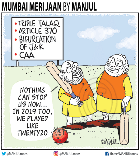 Manjul portrays the Modi-Shah duo rejoicing their political feats of 2019.