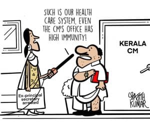 Sajith draws on the arrest of M Sivasankar, the former principal secretary to Kerala Chief Minister Pinarayi Vijayan, by the Enforcement Directorate in an alleged money laundering case. The opposition in Kerala have been calling for Pinarayi’s resignation over the matter.