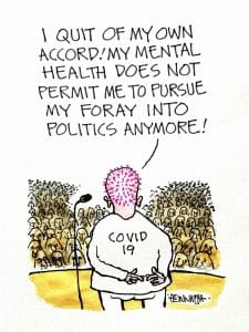 A day after Rajinikanth’s entry into politics appeared doubtful following reports on his health, Nala imagines Covid-19 as a candidate running for elections.
