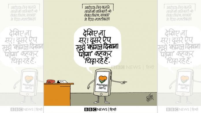 In today’s featured cartoon, Kirtish pokes fun at the government’s RTI reply stating that they don’t have information on who created the Aarogya Setu app or how.