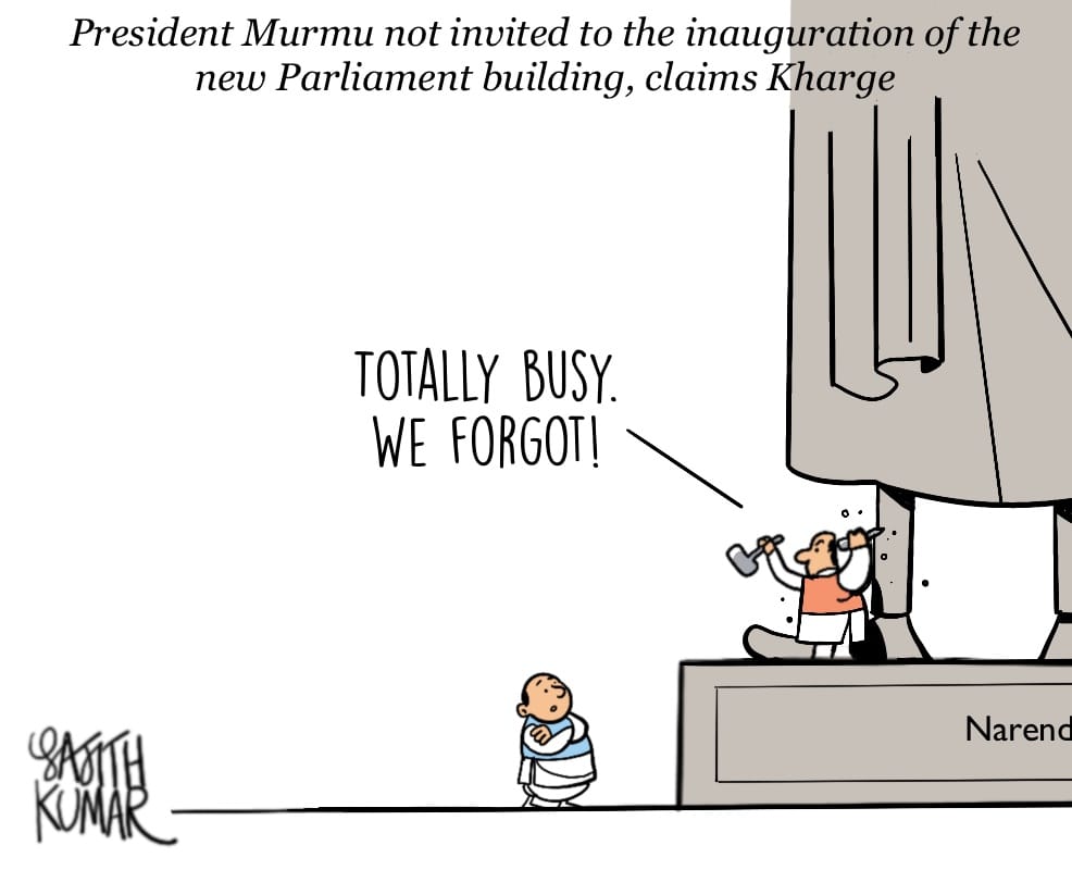 Sajith Kumar takes a dig at the BJP and PM Modi for not “inviting” President Droupadi Murmu for the inauguration of the new Parliament building on 28 May.