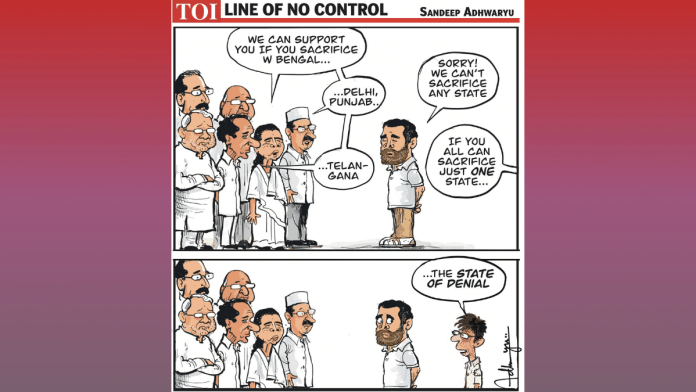 In today’s featured cartoon, Sandeep Adhwaryu draws on the efforts to strengthen Opposition unity to take on the BJP in the 2024 general elections.