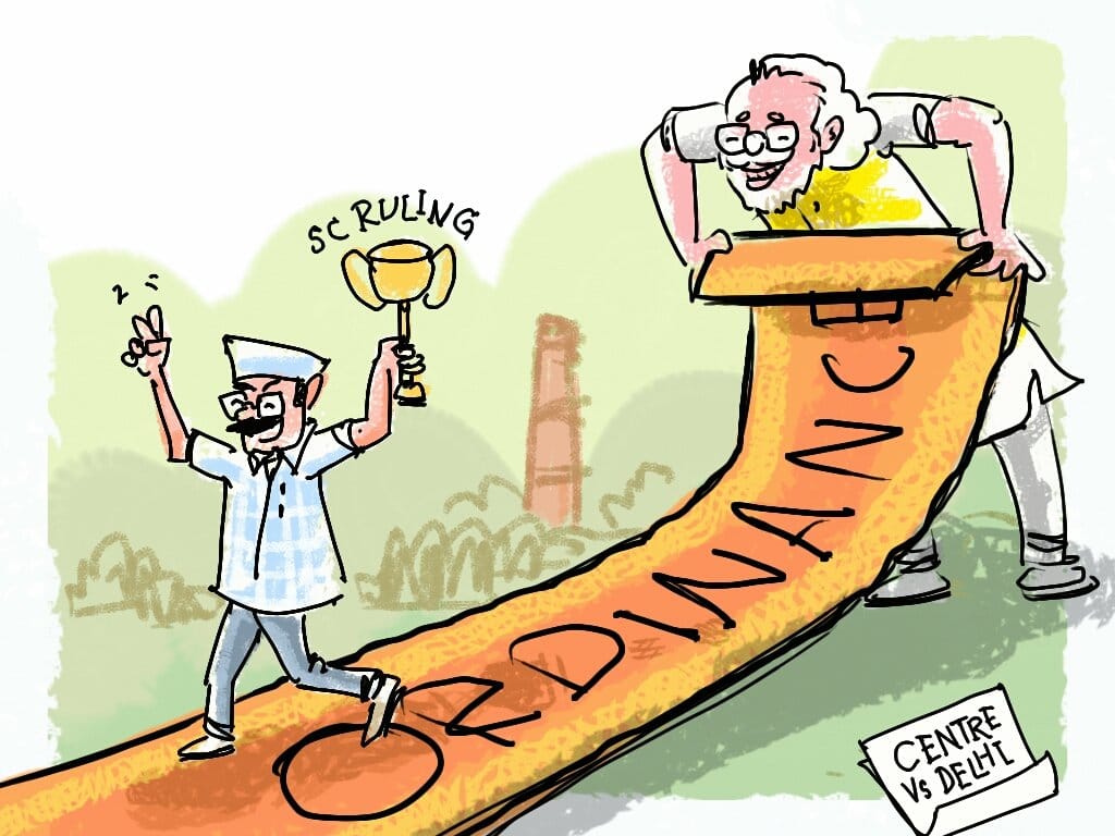 Mika Aziz illustrates the Centre’s decision to reverse the Supreme Court’s decision on Delhi’s ordinance, which first vested the power in Chief Minister Arvind Kejriwal.
