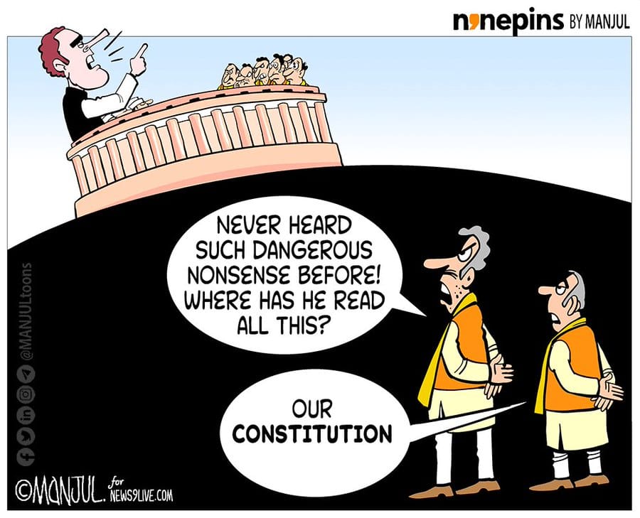 Manjul draws upon politicians slamming Congress leader Rahul Gandhi for his speech attacking the Modi government in the Lok Sabha Wednesday, and suggests what Gandhi did was quote the Constitution.