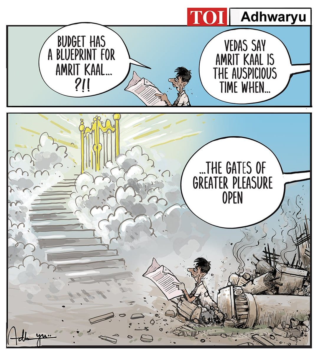 Sandeep Adhwaryu also mocks the Modi government’s Budget for promising ‘Amrit Kaal‘ (literally elixir era) over the next 25 years, and why it sounds hollow considering the current economic plight of the common Indian.