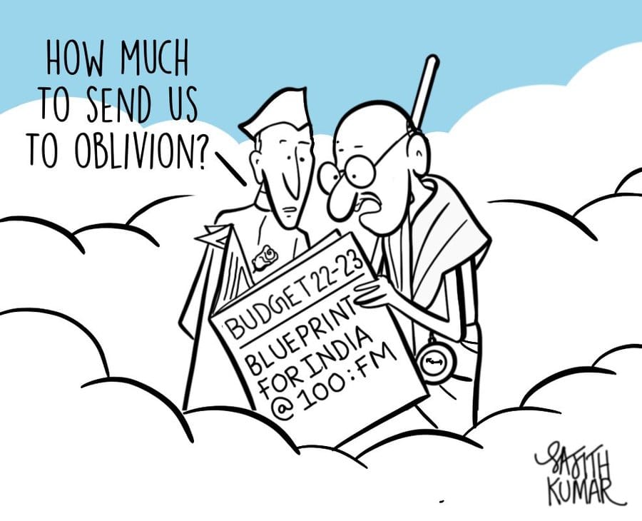 Sajith Kumar has Mahatma Gandhi and Jawaharlal Nehru wondering how much budgetary allocation has been given to getting rid of their imprints on India over the next 25 years.