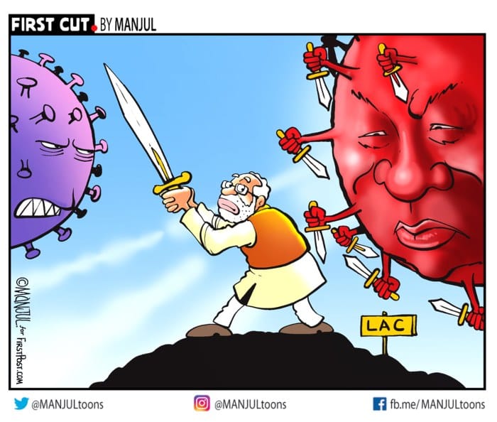Manjul illustrates the dual battle being fought by India.