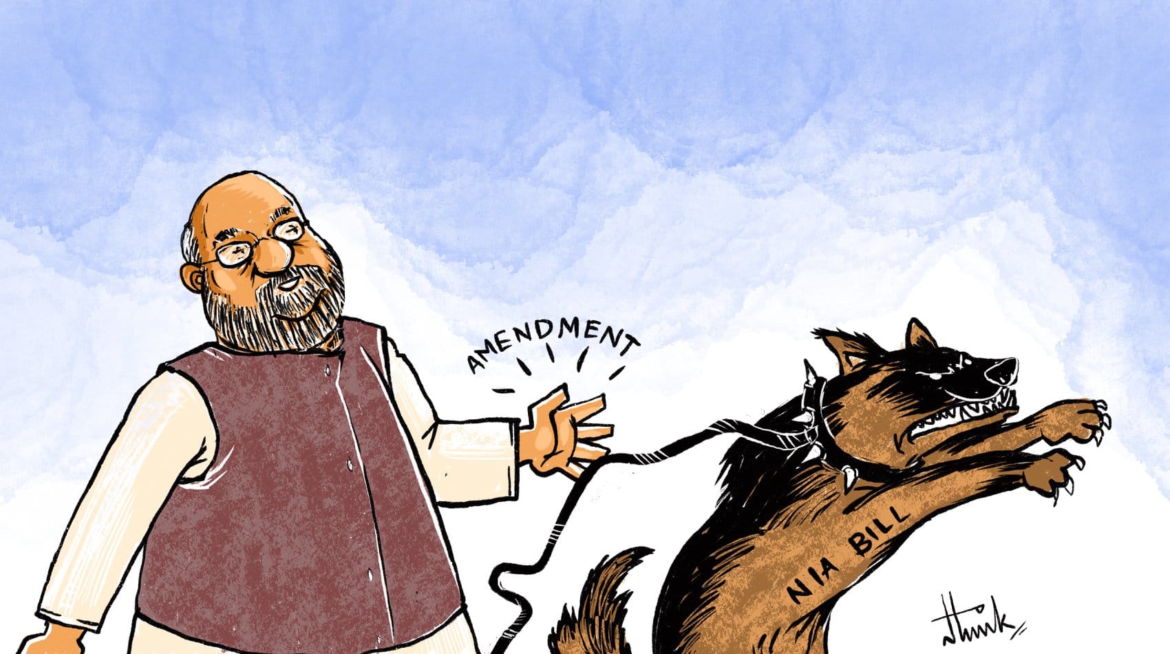 Satwik Gade depicts Home Minister Amit Shah and the National Investigation Agency (Amendment) Bill, 2019, that was passed in the Lok Sabha Monday. The Bill seeks to empower the NIA to probe terror attacks targeting Indians and Indian interests on foreign soil. This apart, the amendments will also allow the NIA to probe cyber crimes and cases of human trafficking.