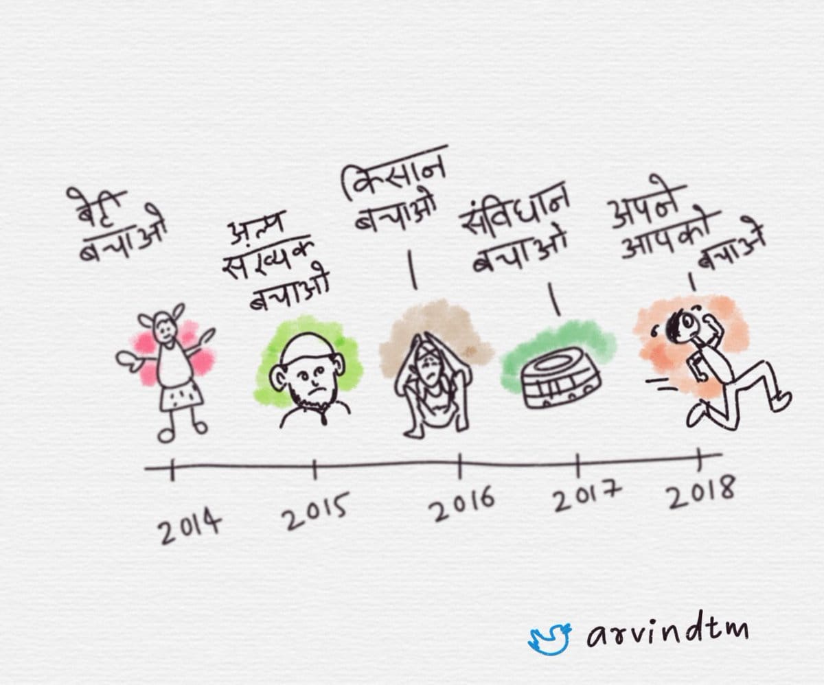 Arvind TM takes a dig at reports about the NDA government’s falling popularity after four years in office.