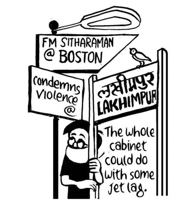 E.P. Unny alludes to Union Finance Minister Nirmala Sitharaman’s recent statement condemning the Lakhimpur Kheri violence during her US visit, even as her other cabinet colleagues have remained quiet on the issue.
